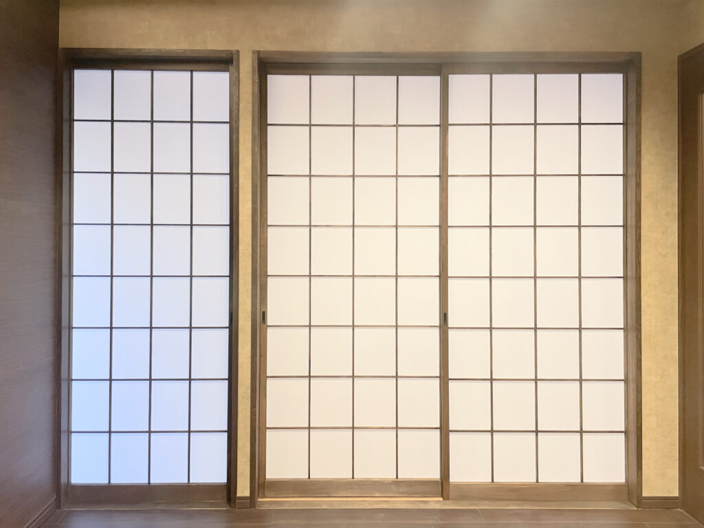 扉が1枚の「片引き戸」、画像のように2枚を行き違わせる「引き違い戸」、2枚を左右にスライドして開閉する「引き分け戸」、壁の中に扉を収納できる「引き込み戸」などさまざまな種類があります。
