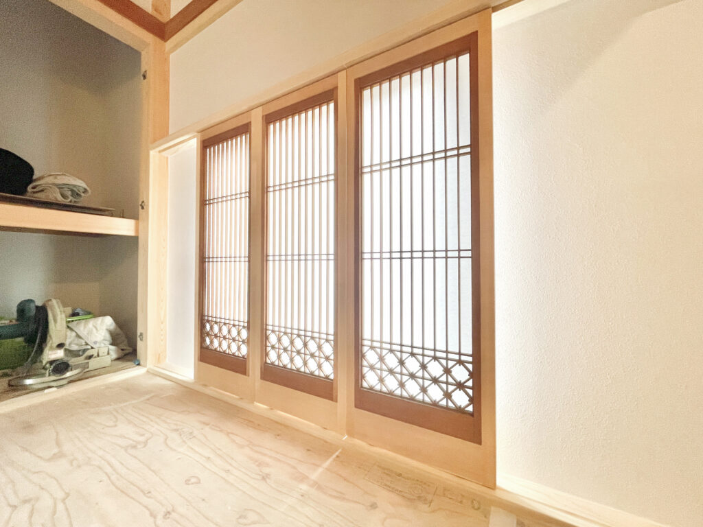 弊社ではこれまでの建具にとらわれず、人の住まう空間に溶け込むようなデザインの間仕切りもオーダーメイドで制作いたします。